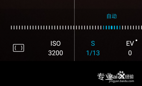 ▼当感光度ISO和快门S处于自档上时,参数是跟着情况主动调节匹配响应曝光值。若是要手动调节,点击S或ISO弹出一个滑块,滑动滑块调节曝光值。
