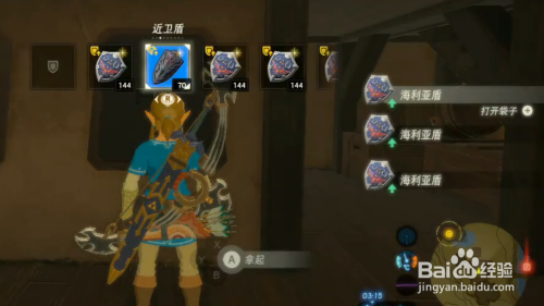 这个时辰装备海利亚盾,然后选择将别的一块盾牌放置到陈列框中。