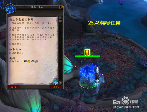 第一步,移动到暗影界,炽蓝仙野地域(坐标25,49)接管使命。