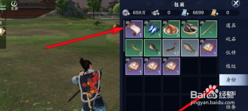 在背包里面选择身份找到点击乐谱。