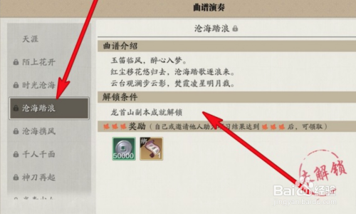 选择点击沧海踏浪可以查看解锁前提。