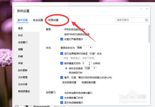 之后在系统设置界面里,点击“权限设置”。