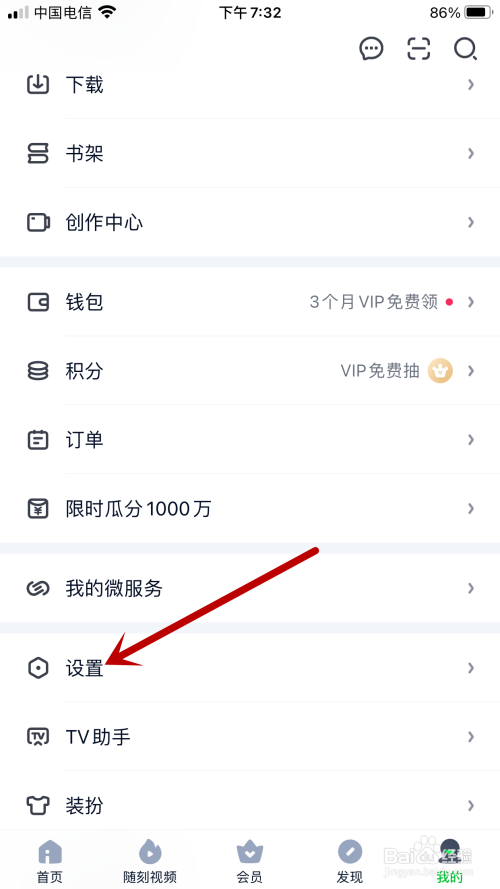 跳转新页面后,查找并点击“设置”。