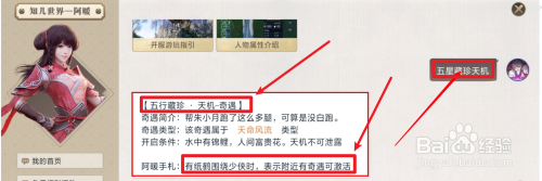 输入五行珍藏天机,就可以看到如何开启奇遇了