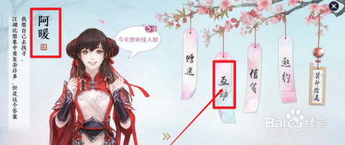 3、然后就可以查看当前阿暖界面,我们点击互动进入。