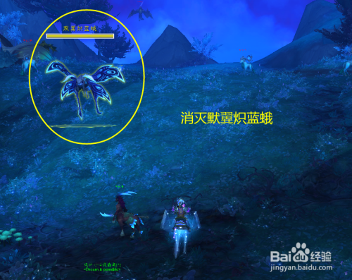 第三步,在使命区域覆灭20只默翼炽蓝蛾。