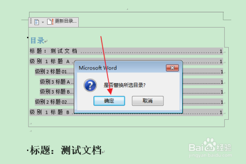 在“是否替代所选目次”的提醒框中,点击“是”。