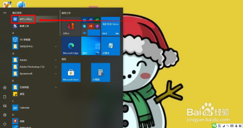 在桌面左下角点击开始菜单,再点击弹窗中的WPS Office程序。