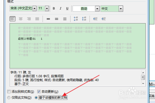 在弹出“点窜样式”对话框中,按照需要点窜字体、字号等样式,勾选“基于该模板的新文档”选项。