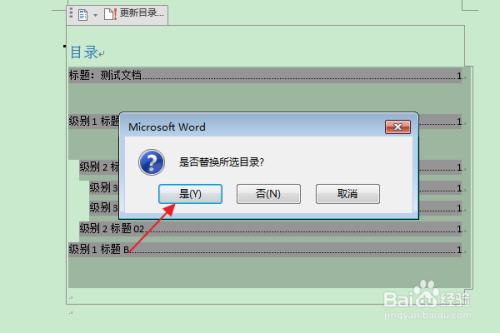 在“是否替代所选目次”的提醒框中,点击“是”。