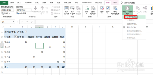 选中透视表中肆意一个单位格,并点击“阐发”选项卡,具体如图所示: