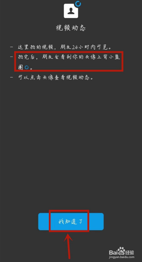 在页面中能看到【拍完后伴侣会看到头像上有小篮圈】字样,点击【我知道了】。