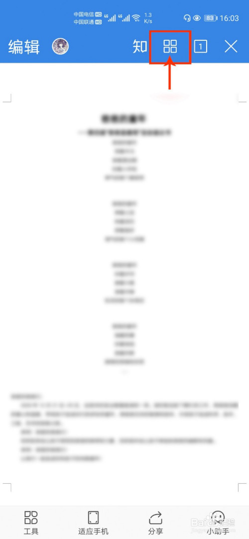 3、打开文档后,点击上方四个方框图标。