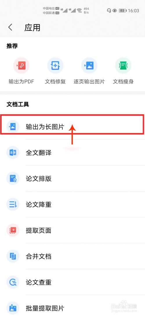 点击【输出为长图片】。