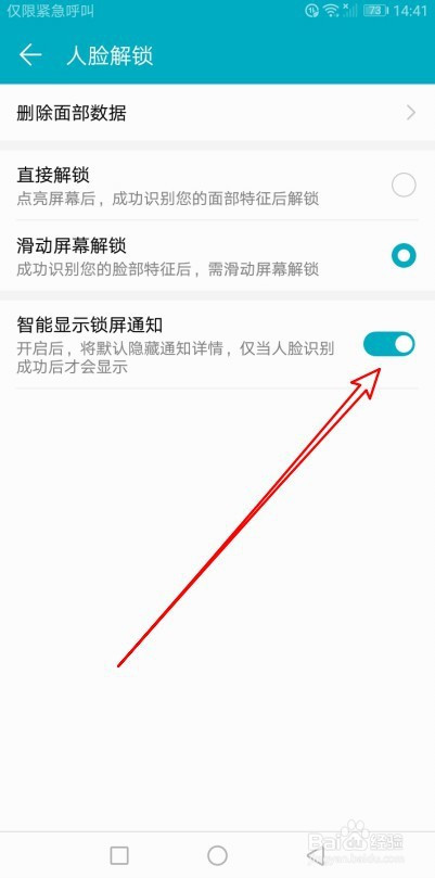 这是会打开人脸解锁设置项,找到智能显示锁屏通知设置项。