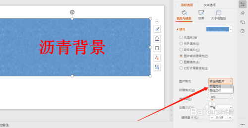 把字体的布景设置为沥青,点击图片或纹理填充。