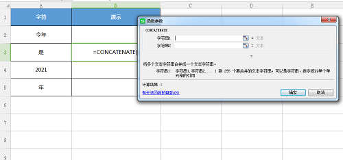 这时会弹出以下窗口。这个我们可以这么理解,将字符串1就是您选中某个单位格,里面包含的文本内容就是字符串1,同理字符串2、字符串3……都是这个事理。
