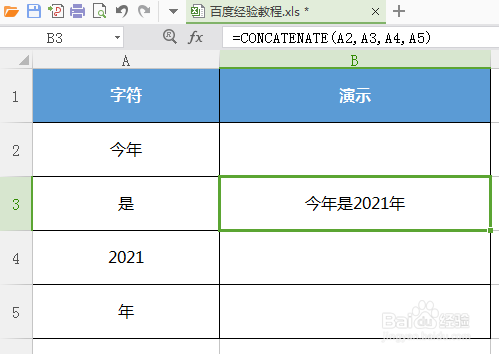 这下,我们在B3单位格里就可以看到CONCATENATE函数生当作的字符串文本啦!(新手当真看我的截图,感受对您有所帮忙的话,帮手为本篇百度经验点个赞,感谢!)