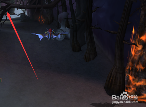 有的插件可能打不开地图,这样巨龙之魂就不轻易找,不外我们有一个特征,到了这里往右侧怪,有一片燃烧的林子,这里就是我们的目标地,往里面飞。