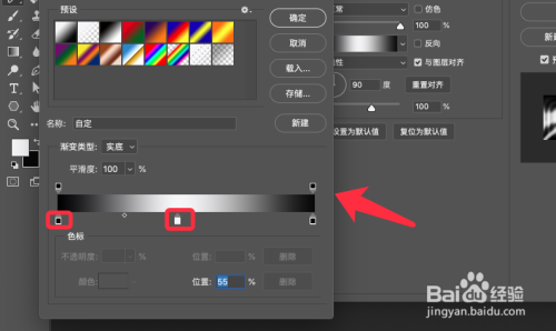 设置渐变颜色为口角黑渐变,点击确定。