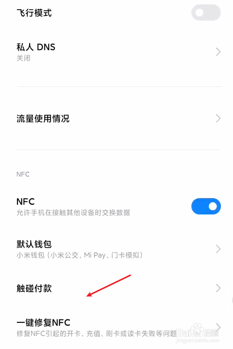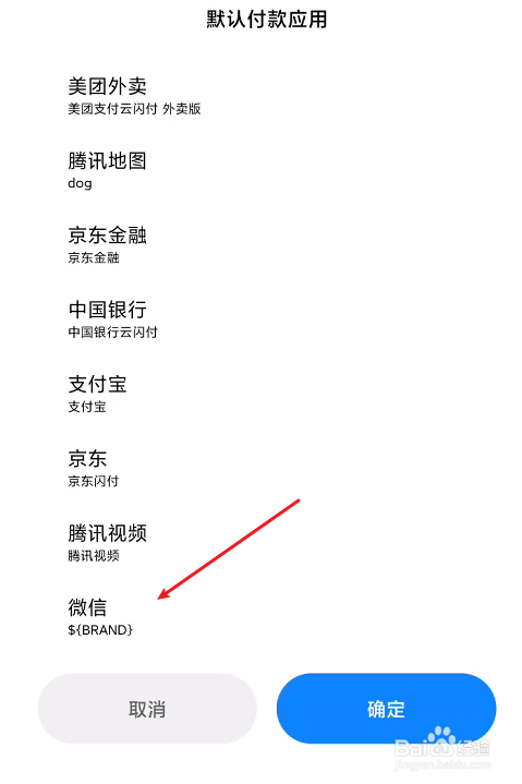 这里我们需要设置默认付条目应用,再点击确定按钮即可,这样我们就可以正常利用触碰支付功能了。