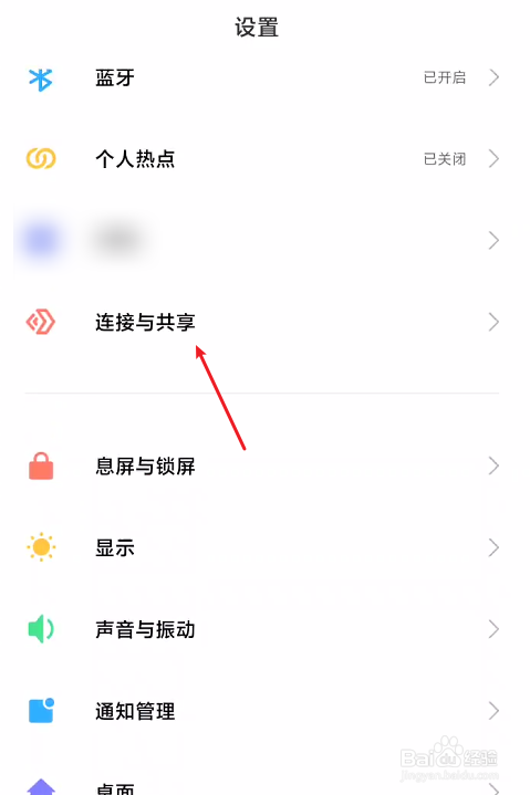 在设置页面里打开毗连与共享选项。