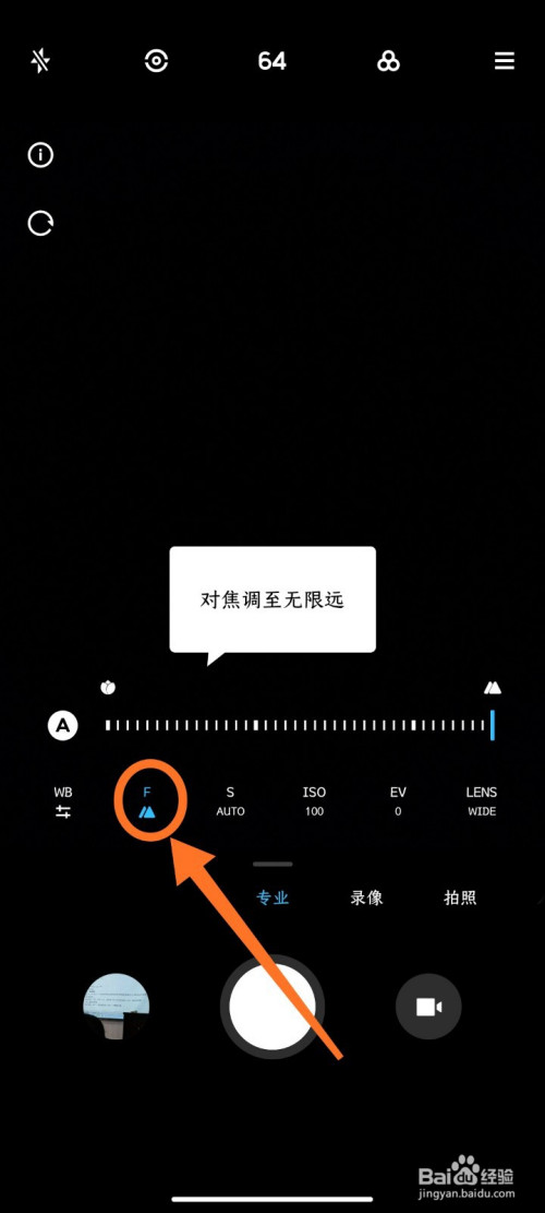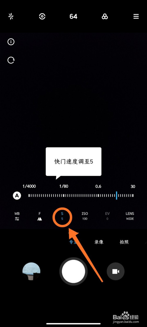 五、点击“S”,把快门速度调至5,将放大倍数调大