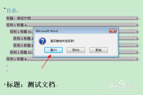 在“是否替代所选目次”的提醒框中,点击“是”。
