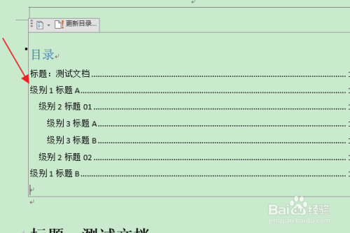 在编纂区中,可以看到已经插入了目次,此时级别1目次项已被添加了项目符号。