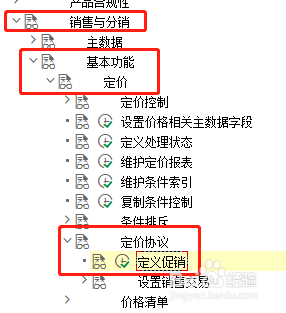点击'发卖与分销',睁开子项,选择'根基功能' —>'订价' —>'订价和谈' —>'界说促销' ,点击执行