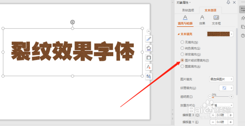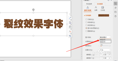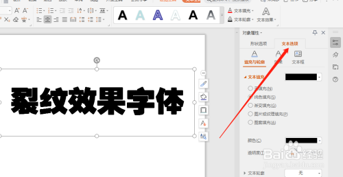建造裂纹结果字体,点击文本选项。