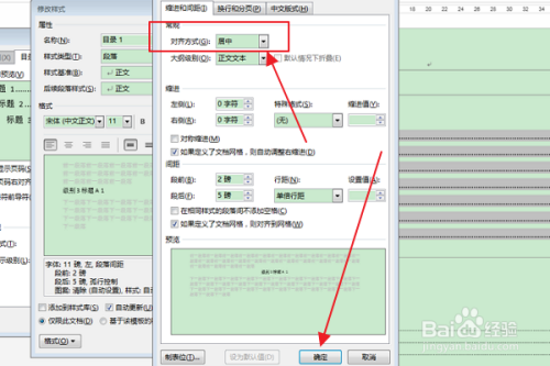 在弹出“段落”对话框中,在“对齐体例”下拉框中选择“居中”选项,点击确定。