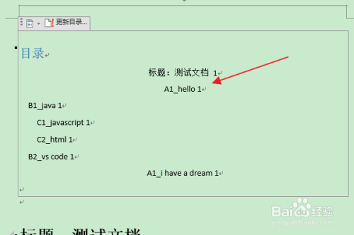 返回编纂区,可以看到选中级别(级别1)目次项文本已被设置为“居中对齐”。
