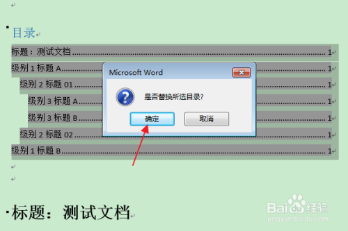 在“是否替代所选目次”的提醒框中,点击“是”。