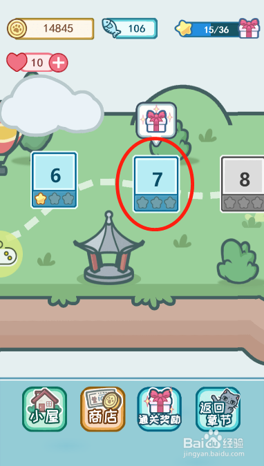 然后回到第三个场景收集猫从头至尾草