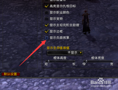 2.在团队框架设置装备摆设中勾选显示负面结果。