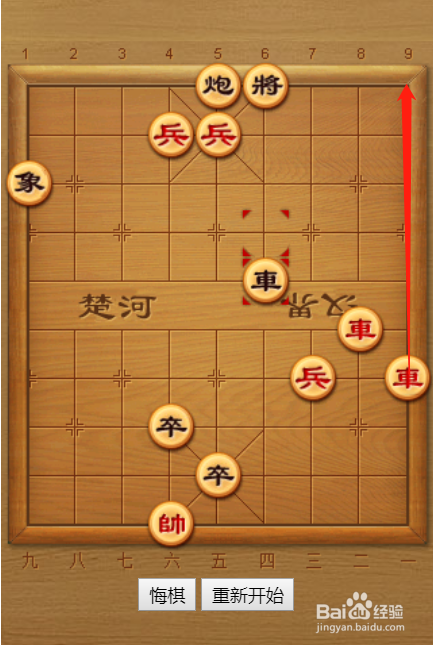 这个时辰我们将我们右边的车移动到对方的底线将军对方