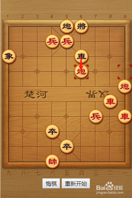 然后我们再将我们残剩的炮左移三格继续将军对方