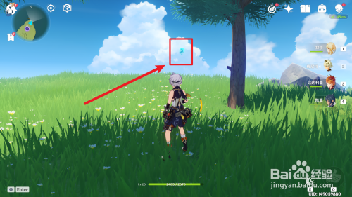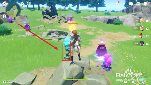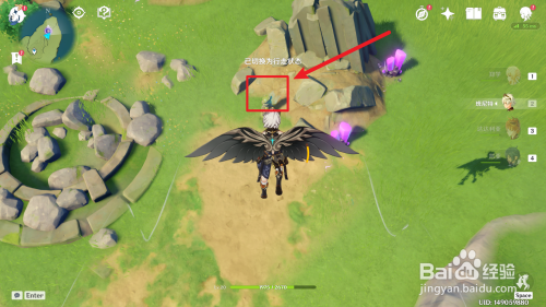 3、然后我们找到一只精灵在绝壁旁边,接近它,把它引到石头灯那点亮石头灯。