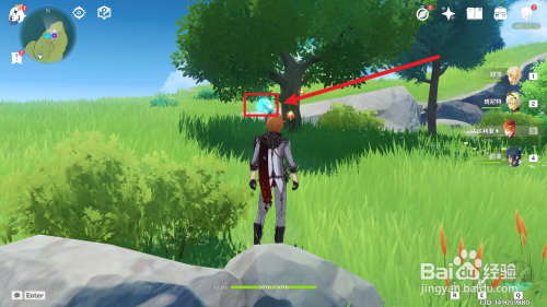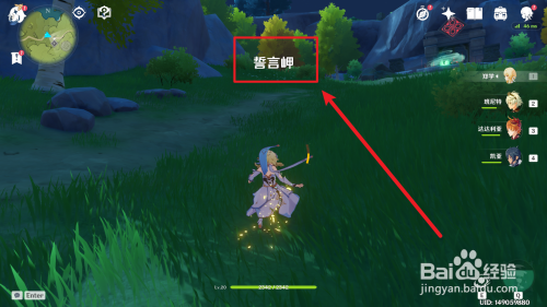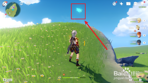 然后我们找到一只精灵在绝壁旁边,接近它,把它引到石头灯那点亮石头灯。