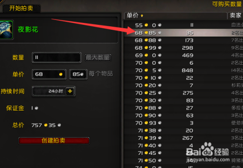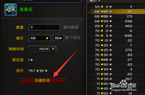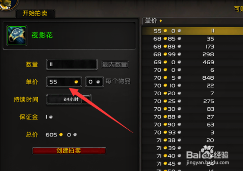 3.看好右侧对应的价钱进行建立拍卖。
