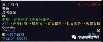 利用这把钥匙可以打开边上的笼子,就会获得达尔的信使徽章,右键利用就可以获得宠物达尔了~
