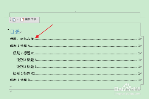 然后点击目次组中“目次”下方的三角按钮。