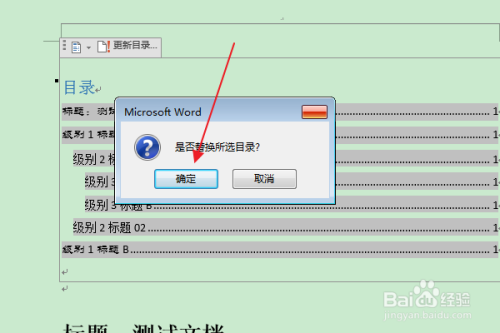 在“是否替代所选目次”的提醒框中,点击“是”。