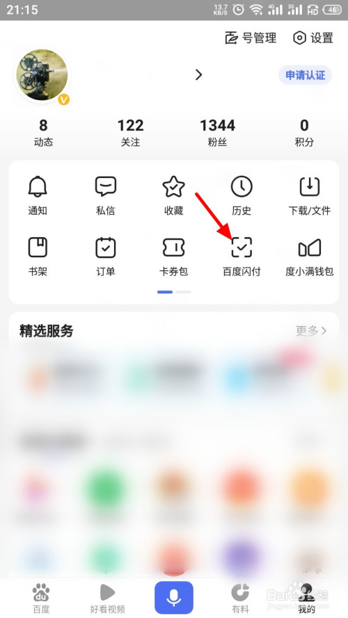 【1】打开 百度,点击 我的>百度闪付>闪付卡;