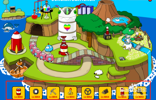 最后点击酒精灯进行化学研究这样子我们就可以成立一个全品级max的幸福海岛了
