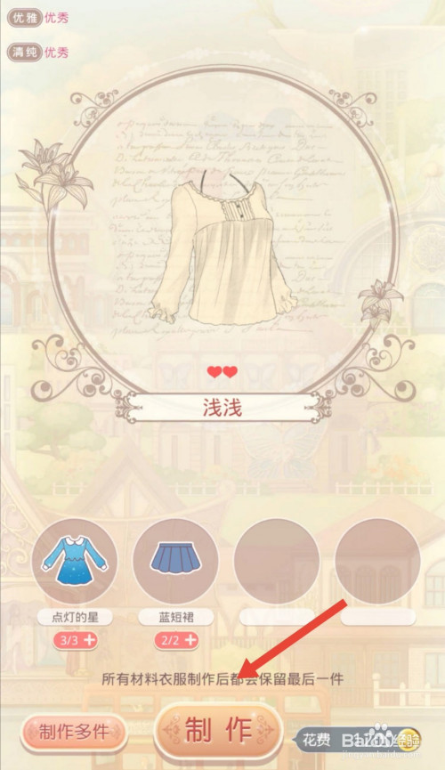 收集建造浅浅上衣的【点灯的星】和【蓝短裙】,点击建造。
