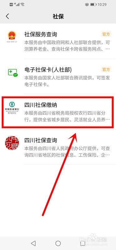 点击四川社保缴纳,然后点击四川社保缴费进入