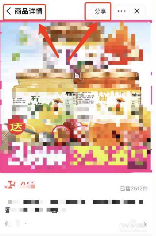 点击后进入【商品详情】界面,点击【分享】选项,如图;