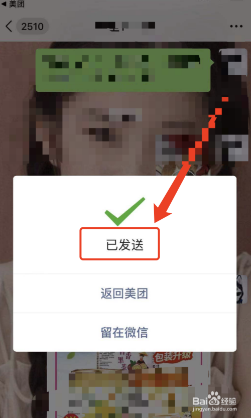 随后界面弹出【已发送】提醒即暗示分享发送当作功,如图;